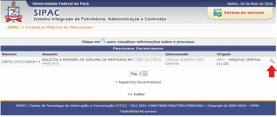3. Certifique e escolha o processo interessado e clique para visualizar;